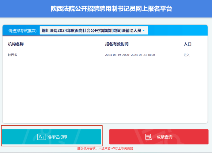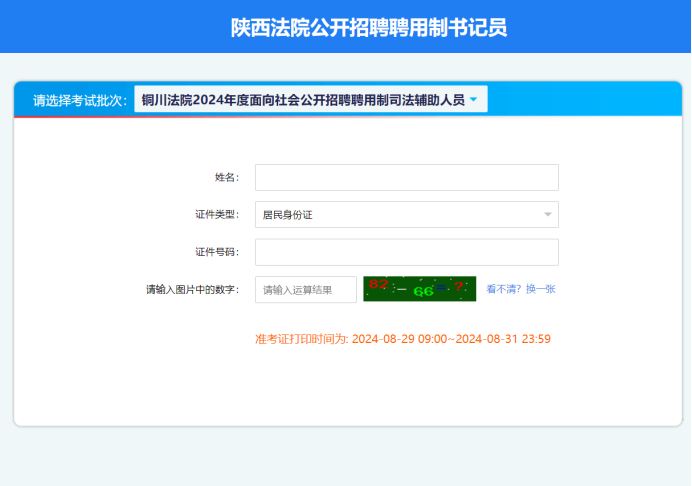 銅川法院2024年度面向社會公開招聘聘用制司法輔助人員考試定于9月1日舉行,考生們請于8月29日9:00至8月31日24:00期間登錄報名系統(tǒng)(http://www.2e8o49aa0.com/)自行打印準考證。