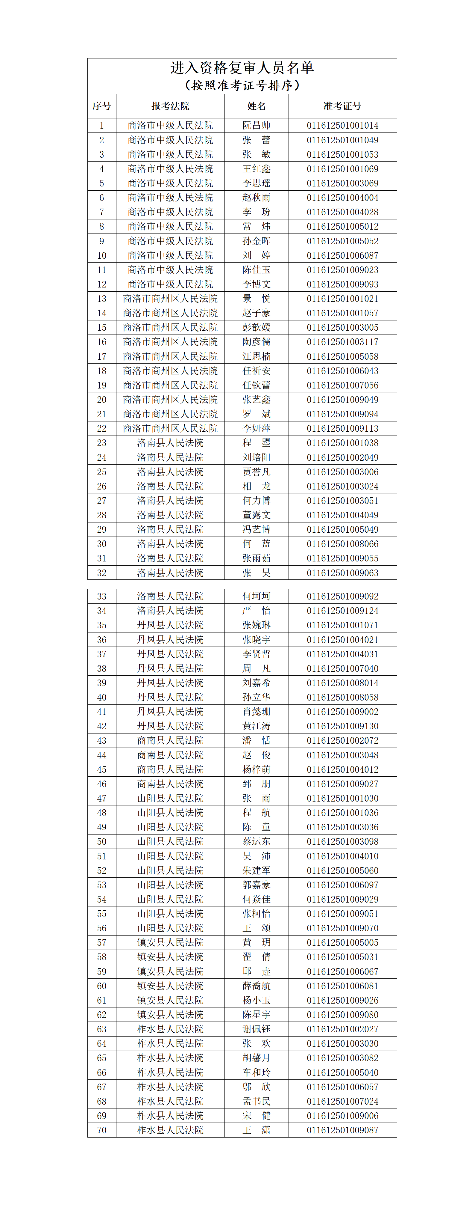 參加資格復審人員以所報考法院的考生綜合成績排名及招聘計劃2倍的比例,由高到低確定(進入資格復審人員名單詳見附件)。